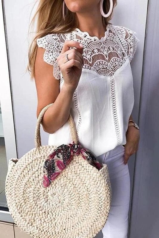 Succombez pour notre Blouse Blanche en Dentelle de Style Bohème Chic. Élégante et légère, elle deviendra une pièce maitresse de votre garde-robe!