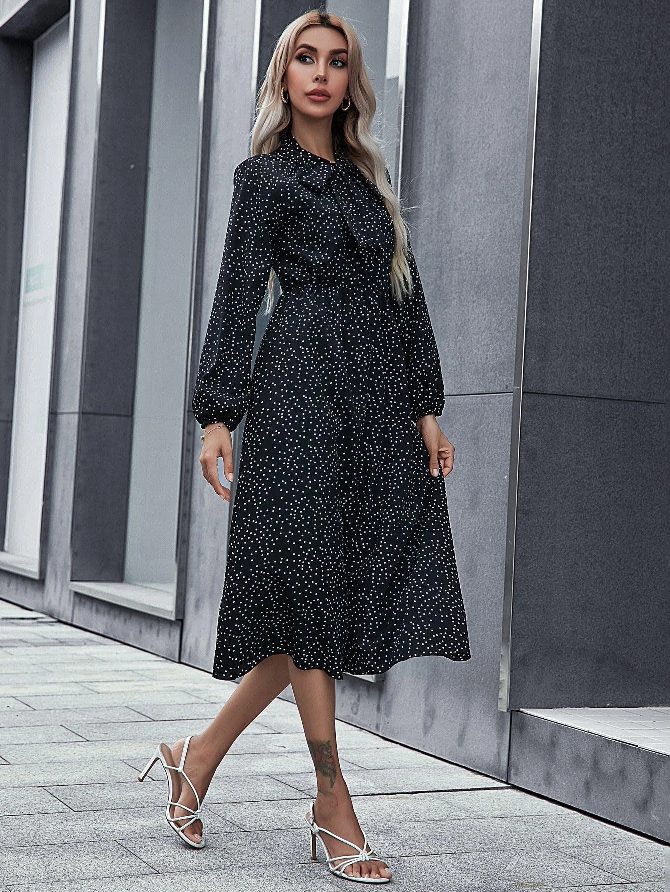 S’habiller pour impressionner dans cette robe boho à pois noirs et blancs ! Ce numéro fluide est parfait pour une journée ou une soirée d’été. La coupe ample la rend confortable et facile à porter, tandis que l’imprimé élégant fait tourner les têtes partout où vous allez. Alors prenez vos sandales, mettez de la crème solaire et préparez-vous à passer un bon moment dans cette jolie petite robe !