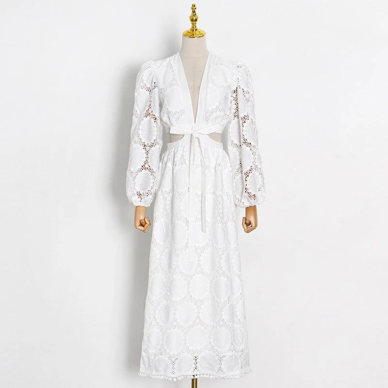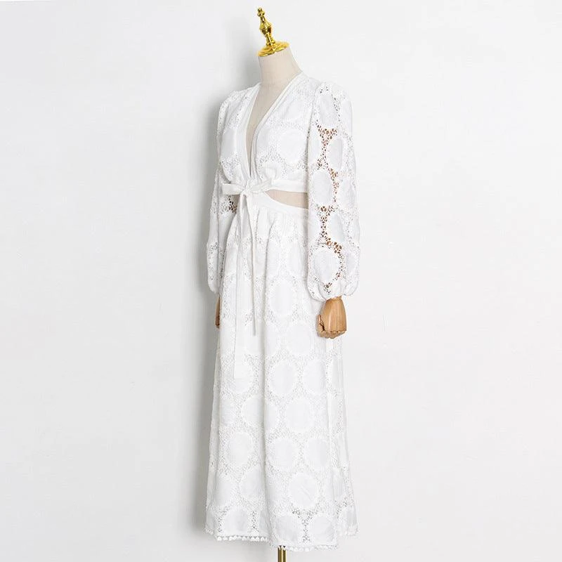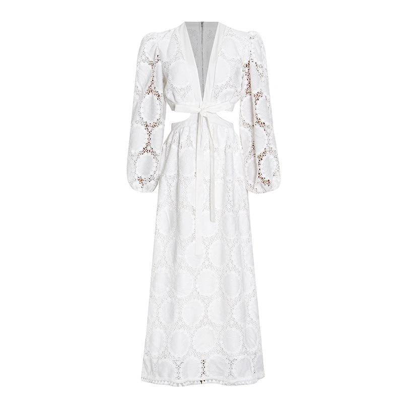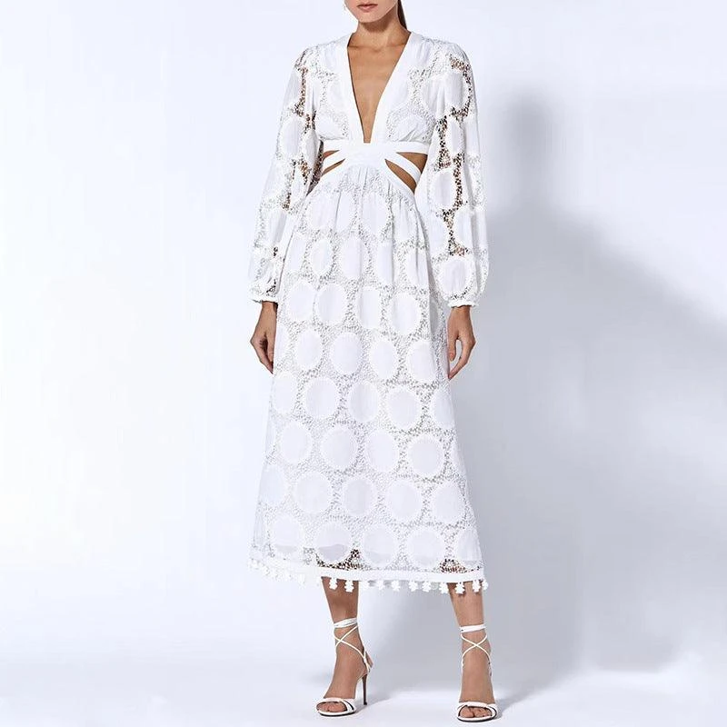 Cette robe en dentelle blanche à manches longues est la pièce de style bohème parfaite pour votre garde-robe.