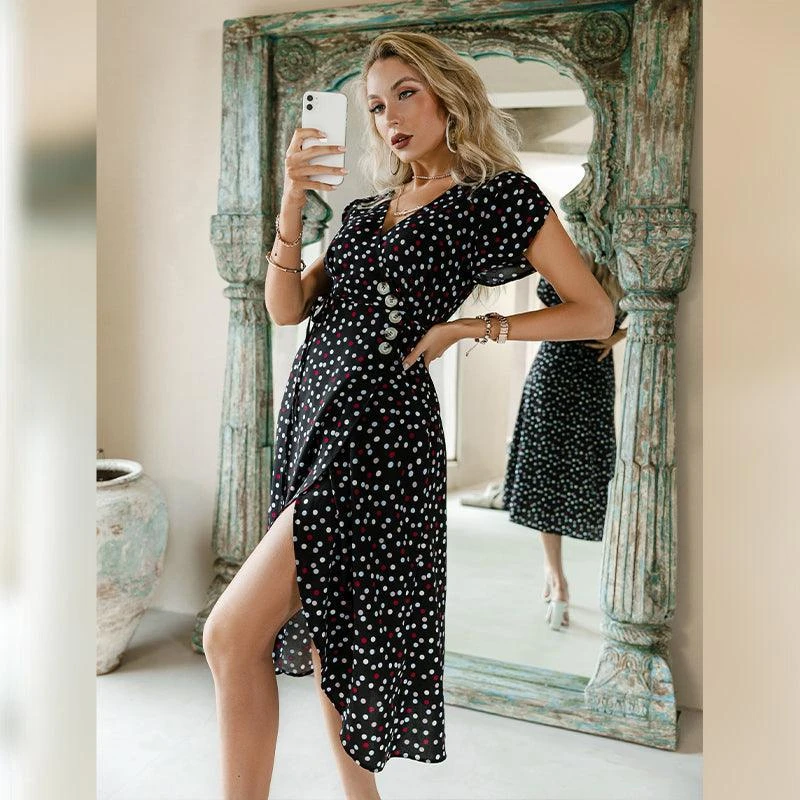 Cette robe bohème fluide noire est l’exemple parfait d’une tenue chic sans effort. La coupe ample et le tissu confortable en font un choix idéal pour une journée passée à explorer de nouvelles villes ou à parcourir le monde. Et qui n’aime pas un peu de romantisme ? Les accents de dentelle sur cette robe lui donnent juste ce qu’il faut de féminité, ce qui la rend parfaite pour toutes les occasions spéciales que vous pouvez avoir dans votre vie !
