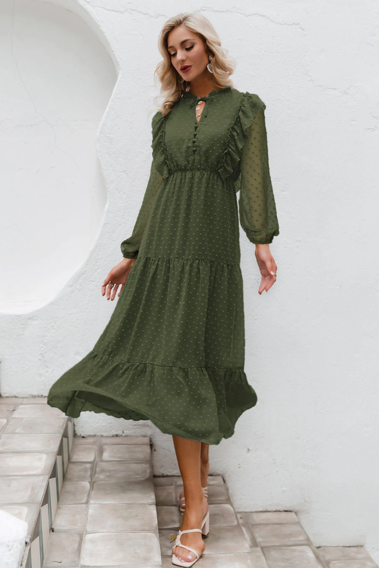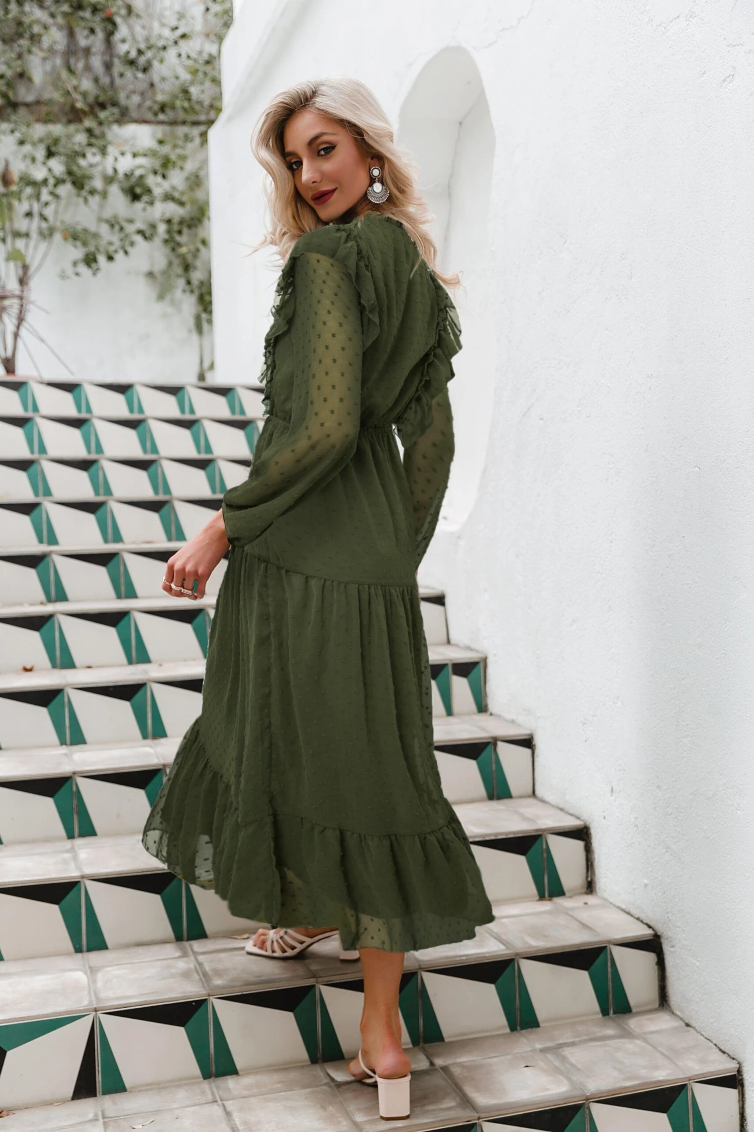 Vous cherchez quelque chose de bohème et de confortable ? Jetez un coup d’œil à notre robe vert olive ! Fabriquée avec un tissu léger, cette robe vous gardera au frais dans la chaleur de l’été. Avec sa coupe décontractée, elle est parfaite pour les jours où vous voulez vous sentir libre et fluide. Et avons-nous mentionné qu’elle est proposée dans une magnifique nuance de vert ? Que vous vous habilliez vers le haut ou vers le bas, cette robe vous ira à coup sûr à merveille!