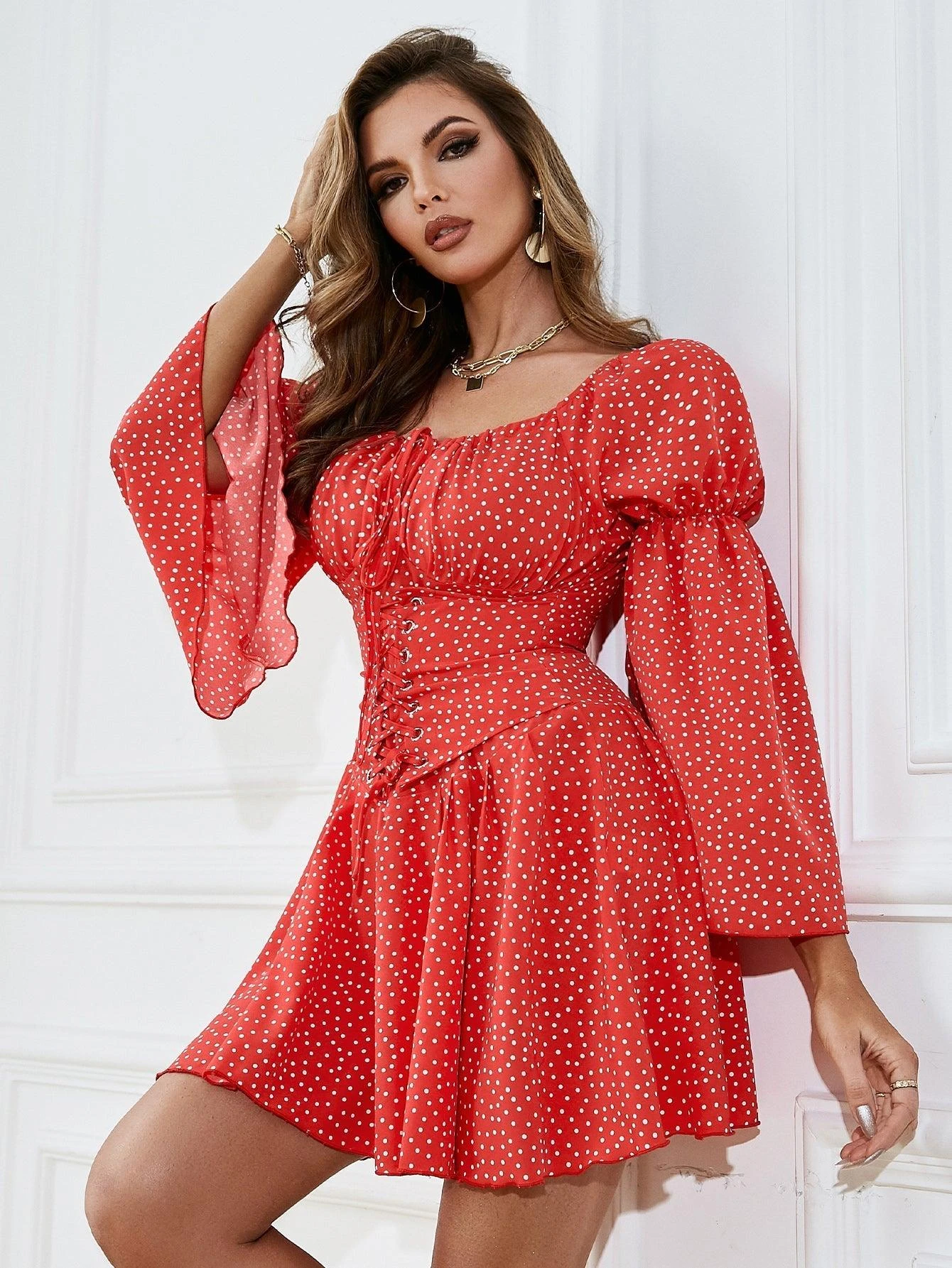 Cette robe corset est parfaite pour les amateurs de style bohème ! Le design décolleté et le corsage à lacets lui confèrent un côté romantique, tandis que la jupe évasée la rend parfaite pour la danse. Vous adorerez à quel point cette robe est confortable à porter, et à quel point vous serez belle dedans.