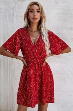 Cette robe d’été est parfaite pour tous ceux qui veulent se sentir libres et stylés à la fois. La coupe ample de la robe vous permet de bouger confortablement, tandis que la couleur rouge et l’imprimé floral ajoutent une touche de style à votre look. Que vous sortiez avec des amis ou en rendez-vous, cette robe vous rendra à coup sûr épatante.