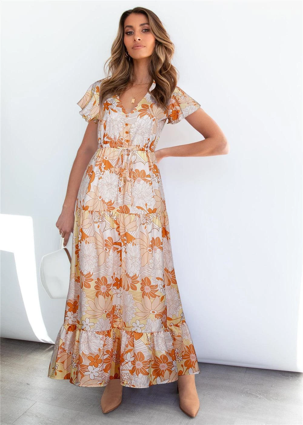 Cette robe est l’exemple parfait du style bohème. Elle présente un magnifique imprimé floral rouge et blanc, avec une silhouette décontractée qui vous fera vous sentir libre et à l’aise toute la journée. La taille empire donne à cette robe une touche romantique, tandis que les manches courtes ajoutent un peu de flair rock’n’roll. Que vous vous rendiez à un festival de musique ou que vous passiez simplement la journée avec vos amis, cette robe de style bohème ne manquera pas de faire tourner les têtes.