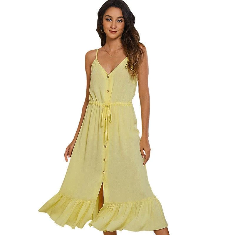 Habillez ou baissez cette robe à volants jaune clair pour n’importe quel événement ! Le style boho est synonyme de confort et de féminité, vous pouvez donc vous sentir libre de vos mouvements dans cette pièce fluide. Elle présente une belle encolure en V et une taille à nouer facile qui lui donne un look sans effort. Ajoutez une touche rock avec des bottes noires ou soyez romantique avec des sandales à fleurs. Vous ne pouvez pas vous tromper, quelle que soit la façon dont vous choisissez de le porter !