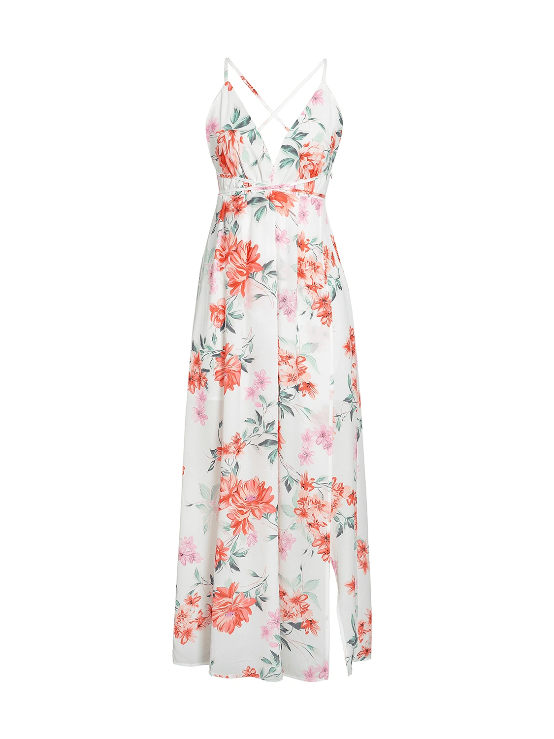 Si le bohème est votre style, cette robe est un must-have ! La maxi robe blanche présente un imprimé floral dans des tons de vert, de bleu et de rose. Elle est fabriquée en tissu léger qui vous gardera au frais pendant les chaudes journées d’été. Que vous alliez à la plage ou au restaurant, cette robe est parfaite pour toutes les occasions !
