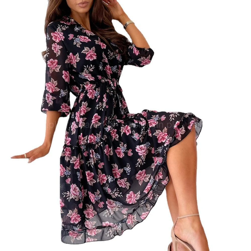 Cette robe noire à fleurs roses est parfaite pour une amoureuse du style bohème ! La coupe ample et le tissu léger la rendent confortable à porter, tandis que les jolies fleurs ajoutent une touche de féminité. Que vous sortiez à un rendez-vous ou que vous passiez la journée à vous détendre à la maison, cette robe vous fera vous sentir confiante et belle.