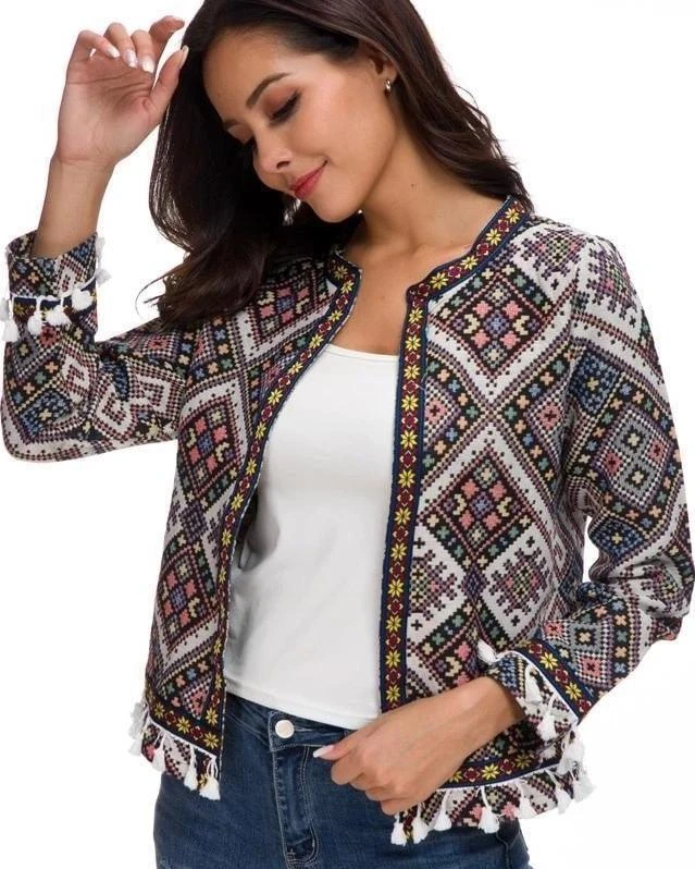 Donne un Style Bohémien Chic à ta tenue avec notre Veste Courte Bohème. Notre Veste est idéale pour compléter ta garde-robe Bohémienne.